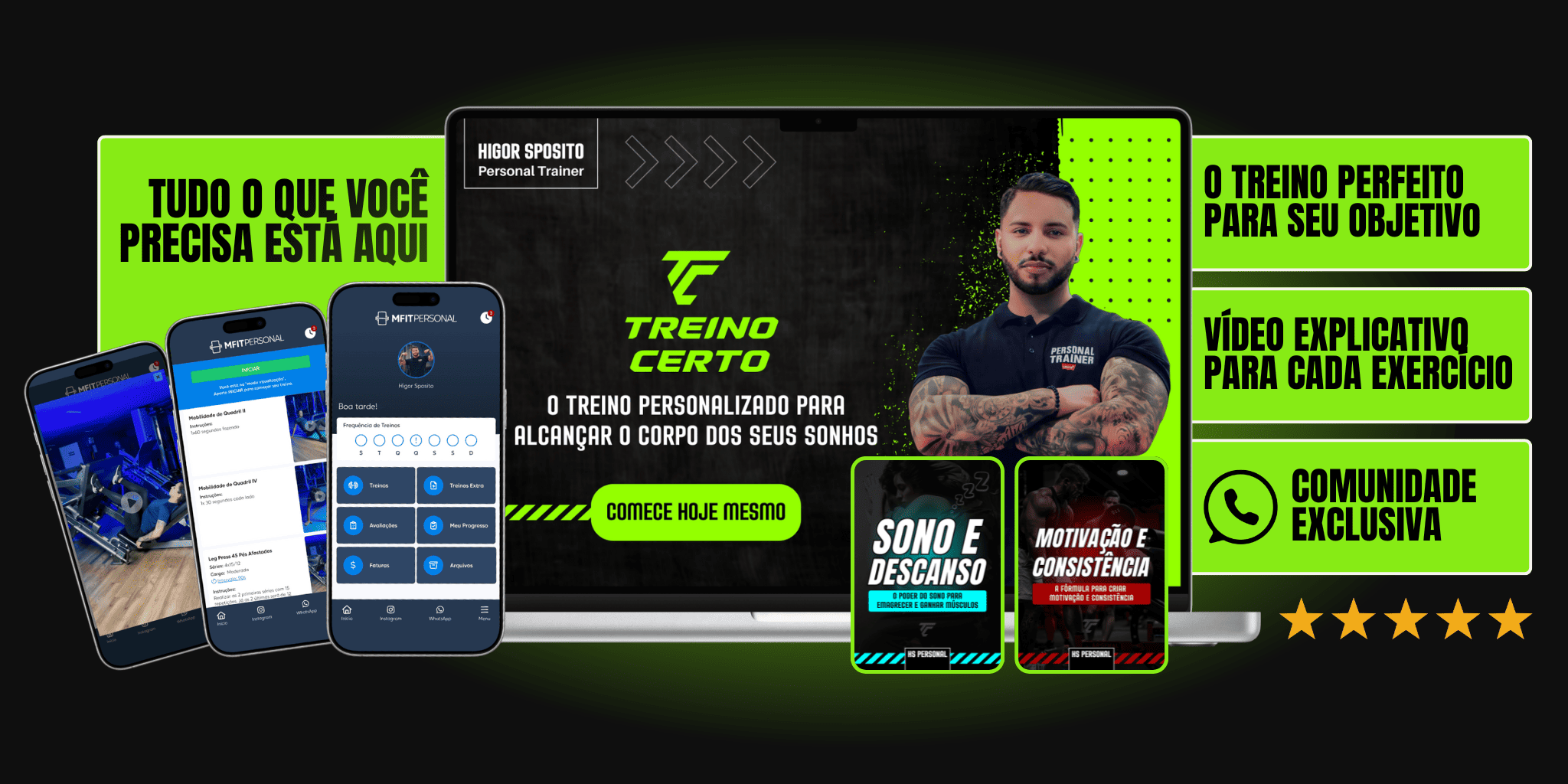 Ao se inscrever no Treino Certo, você garante acesso a um plano completo, com treinos personalizados, vídeos explicativos, suporte exclusivo e bônus essenciais para potencializar seus resultados. Tudo isso para que você queime gordura, ganhe massa muscular e evolua de forma eficiente, sem perder tempo com métodos genéricos.